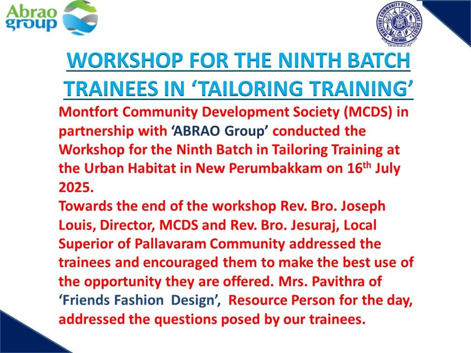 2025- MCDS ABRAO Tailoring Training 9th Batch Valedictory Function