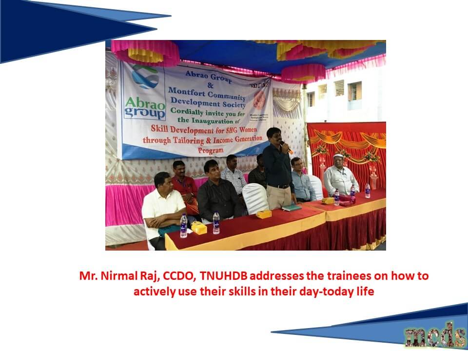 2019 - Inauguration of Skill development for SHG women through Tailoring at New Perumbakkam