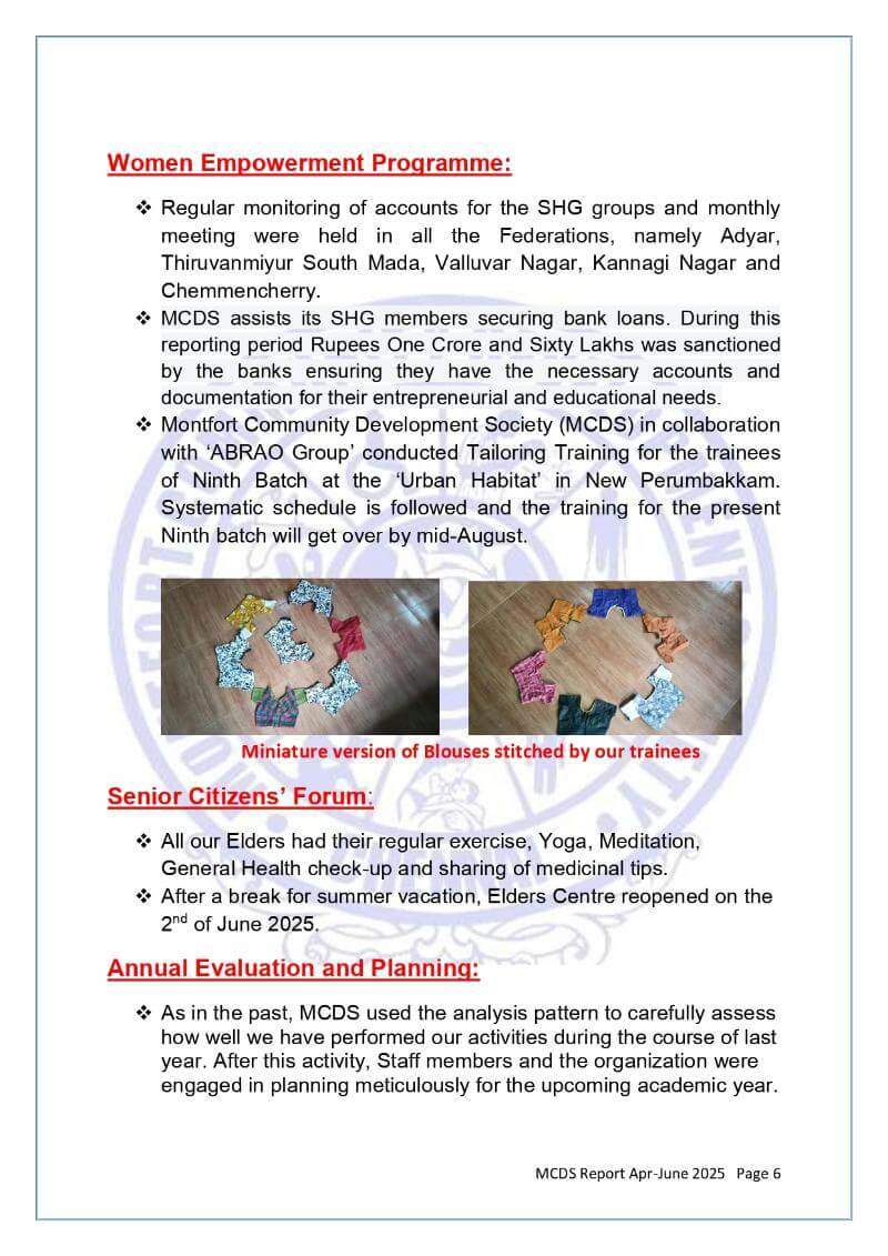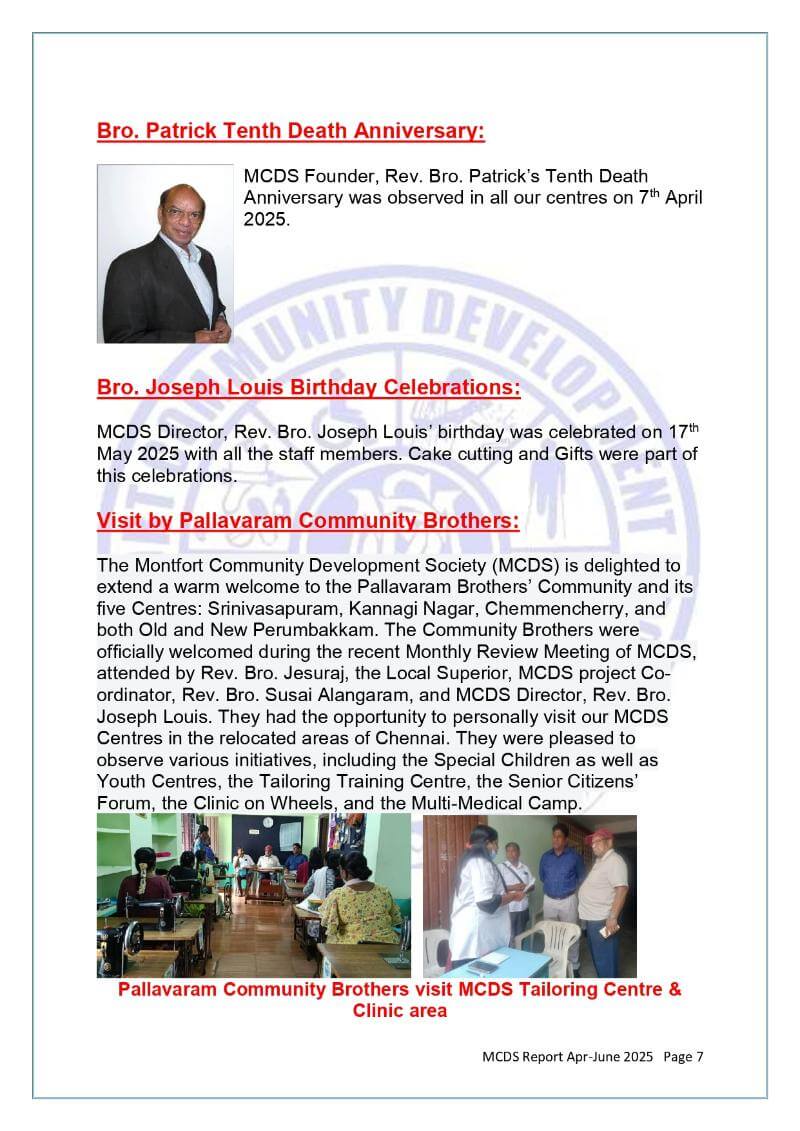 MCDS Activities - April - June 2025