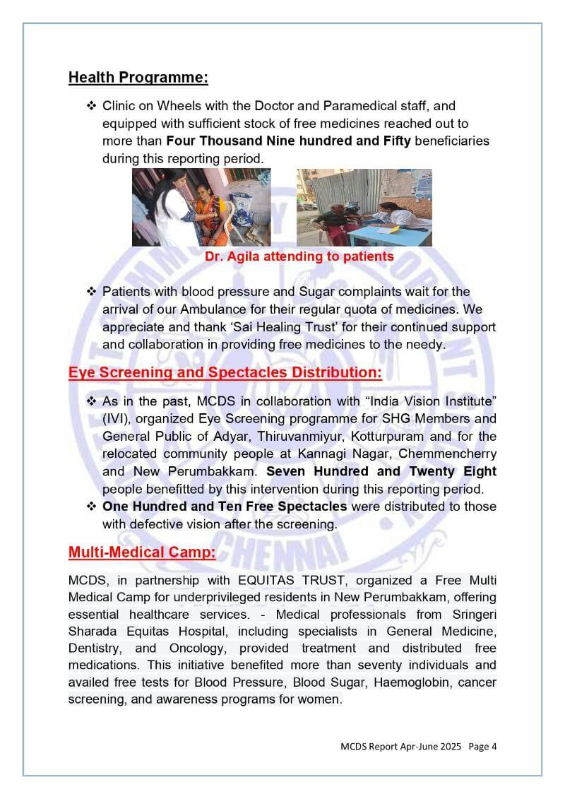 MCDS Activities - April - June 2025